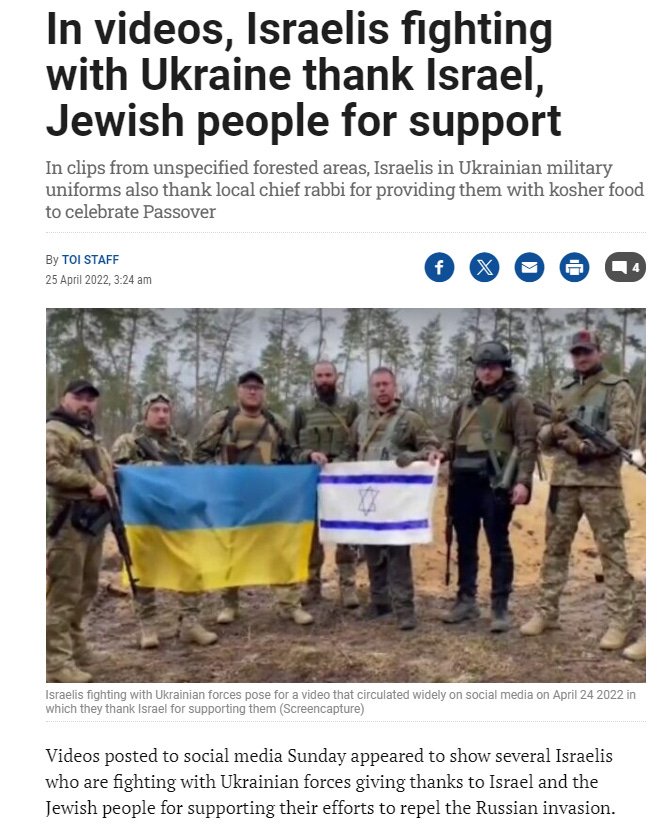 Videos posted to social media Sunday appeared to show several Israelis who are fighting with Ukrainian forces giving thanks to Israel and the Jewish people for supporting their efforts to repel the Russian invasion.