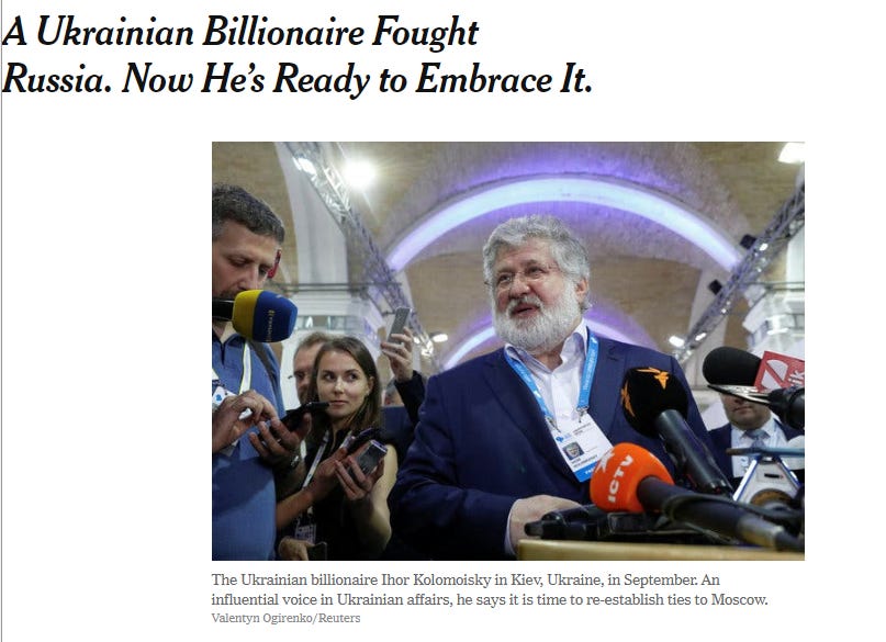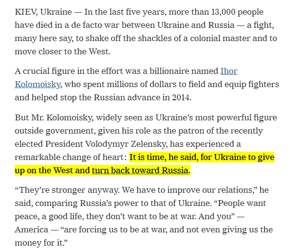 4) The main Jewish oligarch that is cited as some kind of proof of "Jewish conspiracy" is Igor Kolomoisky; yet in 2019 Kolomoisky said Ukraine should abandon the West and cut a deal with Russia;