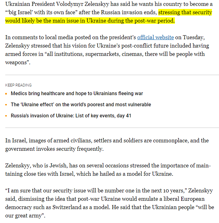 11a) Conspiratards took a Zelensky statement wildly out of its context to suggest he wants to turn Ukraine into Israel. What he actually said was nothing more than him comparing the security situation of Israel and Ukraine: