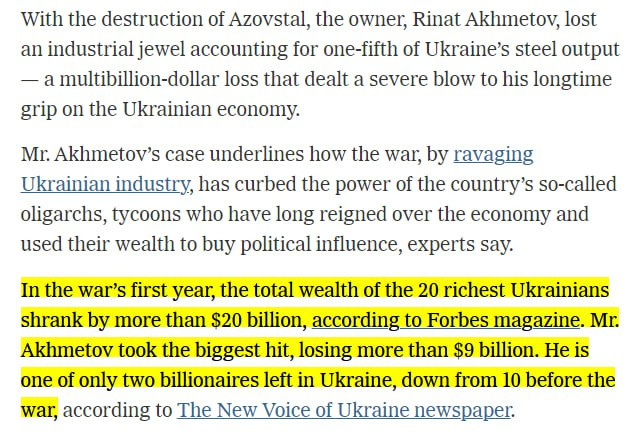 7) The wealth of many of Ukraine's oligarchs including the Jewish ones has evaporated because of the war; they've lost billions as Russian missiles have ripped apart most of the large factories in the East of the country and destroyed critical infrastructure.