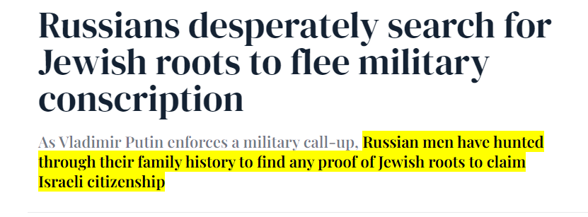 Many Russians are trying to "discover" Jewish roots so they can emigrate to Israel and avoid conscription.