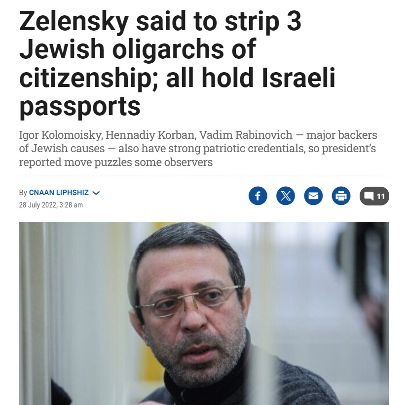 5) Zelensky reportedly stripped the passports of Kolomoisky & two other wealthy Ukrainian Jews: Hennadiy Korban and Vadim Rabinovich; Rabinovich was pegged as a "traitor". These people are clearly not all in cahoots with each other and have personal motives for what they do.