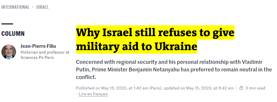 10) The US has asked Israel to provide lethal aid to Ukraine but Netanyahu has kept Israel neutral and refused to participate in sanctions against Russia; a report states: