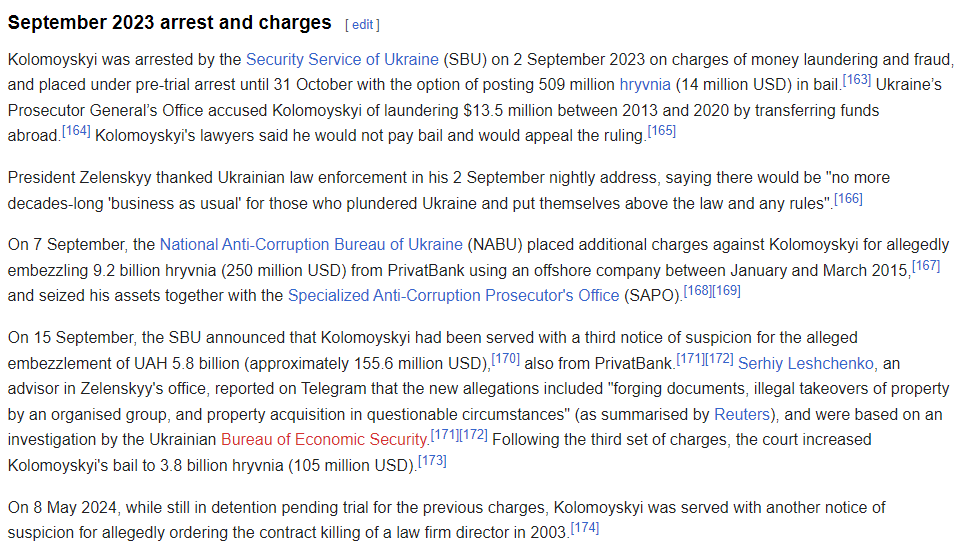 …. as a result Poroshenko had Kolomoisky's bank seized; under Zelensky, Kolomoisky was arrested again and charged with money laundering and fraud; Zelensky thanked the police after the arrest. Kolomoisky was put under US sanctions by Secretary of State Anthony Blinkin, also Jewish.