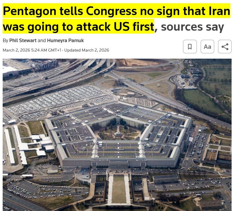 Iran is by no means a benevolent regime. I don’t want this to come across as “shilling” for Iran because that’s not what it is. They killed thousands of their own people during protests a few months ago. They helped Russia kill Ukrainians with Shahed drones. They’re a double-dealing power. But so is every major power. Trump’s war pretext is comically weak and this appears to be yet another Israel First war to help Tel Aviv achieve total regional domination, if not superpower status.