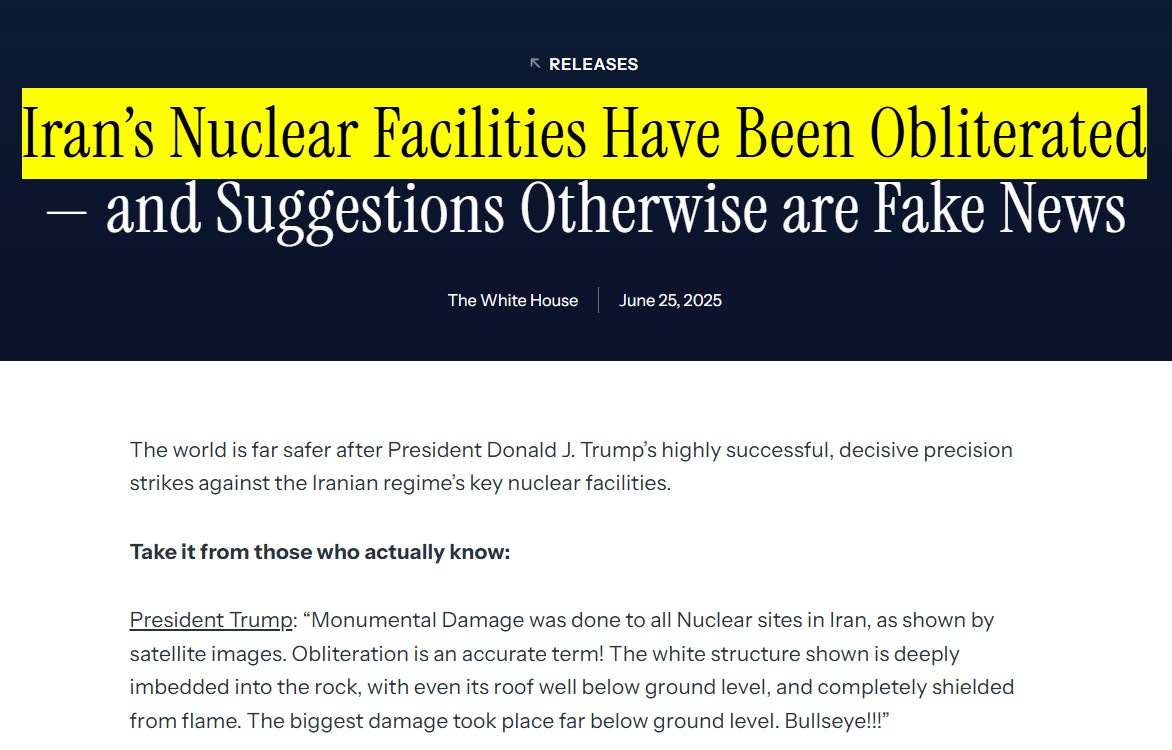Eight months ago Trump and Israel bombed Iran’s nuclear facilities and declared Iran’s nuclear program (which is not yet a weapons program) “completely obliterated”.