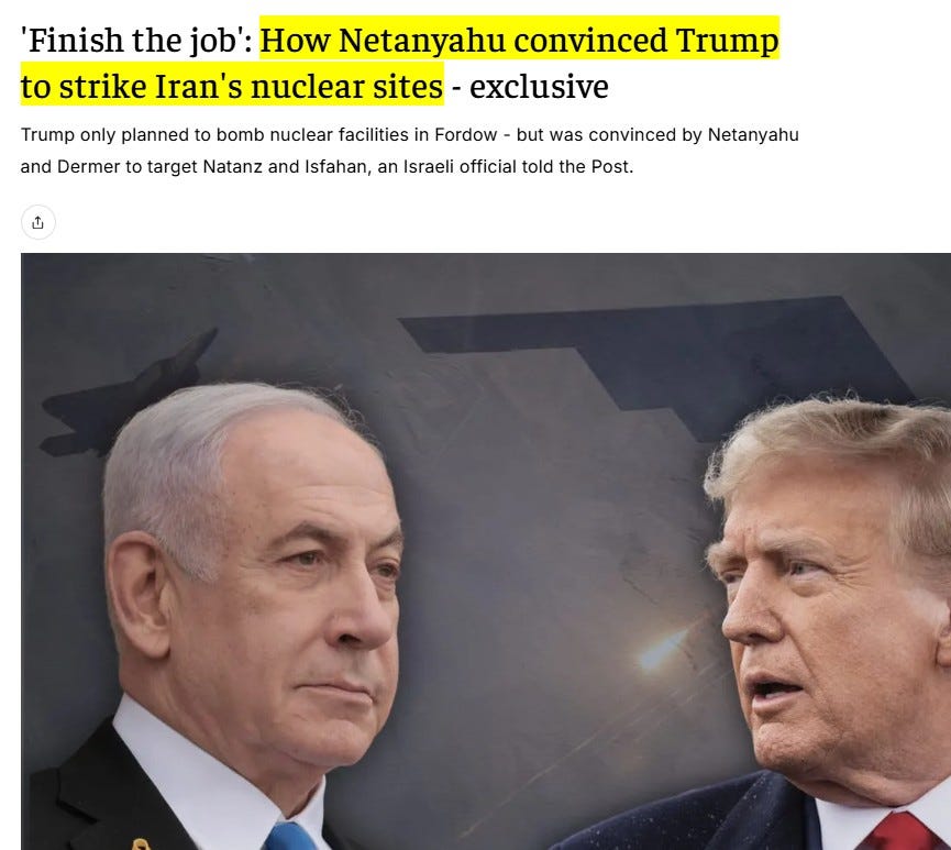 According to the Jerusalem Post, Trump was convinced to attack Iran last June by Bibi Netanyahu and Ron Dermer.