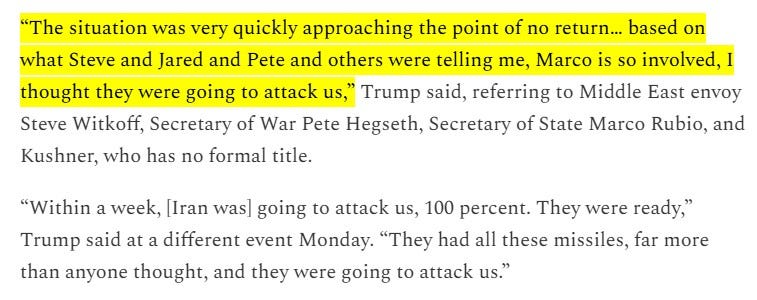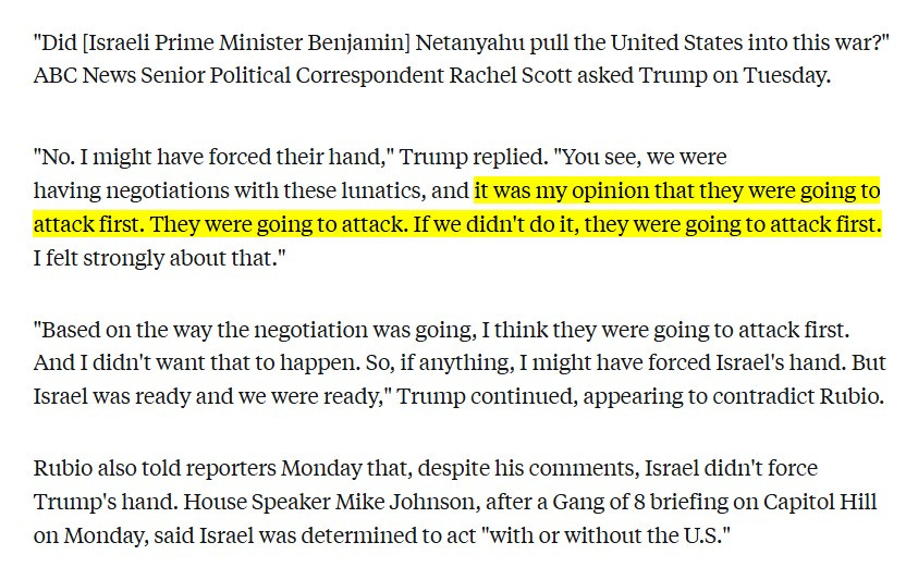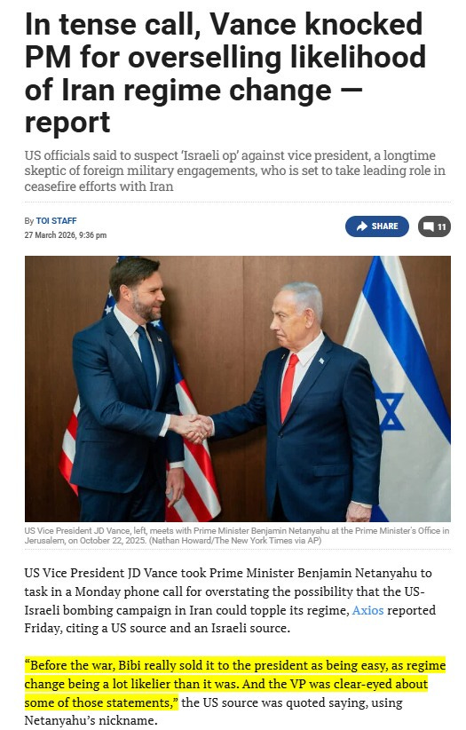 JD Vance more or less confirmed that Netanyahu dragged them in by confronting him in a phone call about “overselling” the ease of regime change.