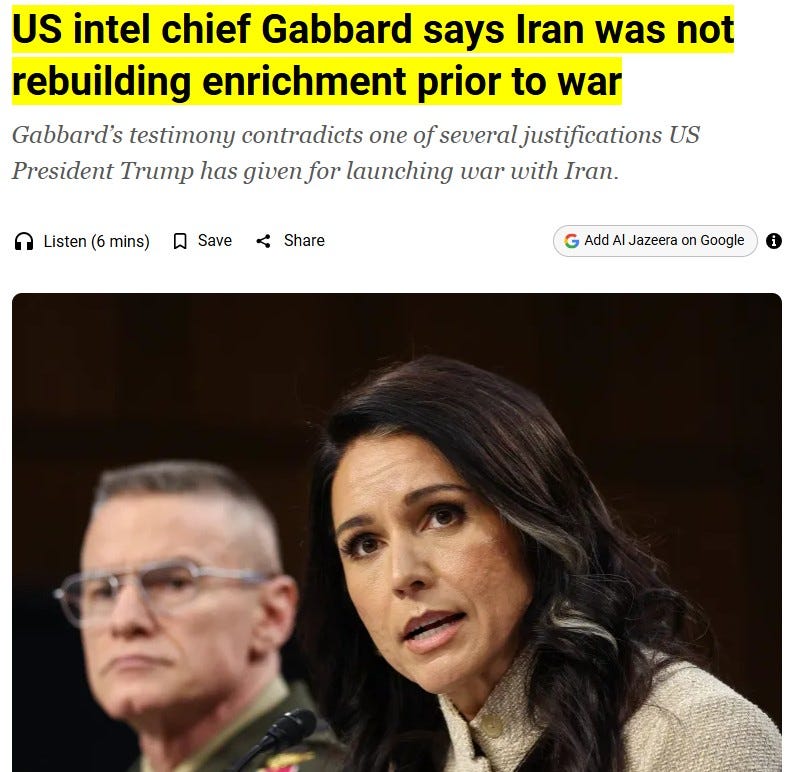 National intelligence chief Tulsi Gabbard gave testimony before congress saying that Iran has not attempted to rebuild the facilities since the operation.