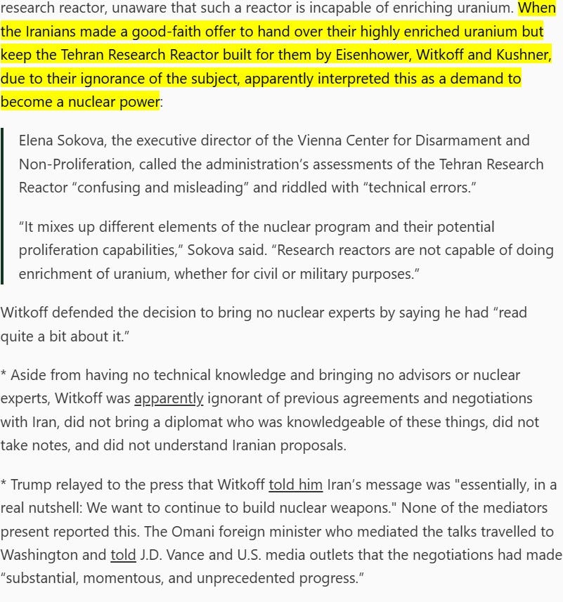 Trump dispatched two partisan Jews - Witkoff and Kushner - to engage in bad faith “negotiations” with the Iranians in which they didn’t even bring technical experts familiar with nuclear weapons production. Keith Woods reported that Witkoff mangled an Iranian proposal to keep a civilian site open in exchange for diluting their enriched uranium.
