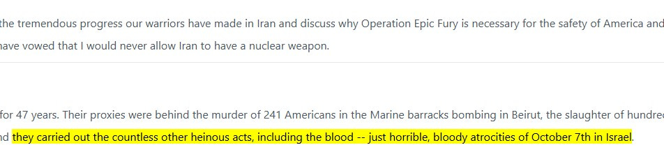 That’s not logical. Iran probably would have focused on Israel, not wanting to draw the more powerful US into the conflict. Trump even cited the October 7 attack by Hamas on Israel as part of his war justification to go in the second time.
